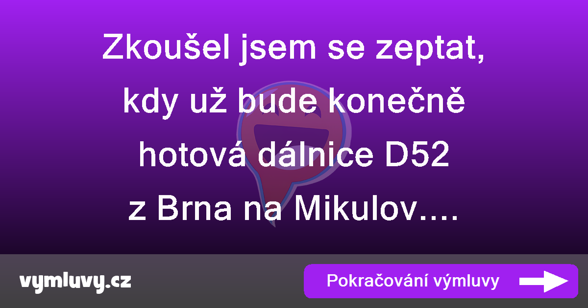 Zaslechl si jinou, lepší výmluvu? Poděl se o ní se svými přáteli i s námi. Svou výmluvu můžeš snadno přidat na tento web.