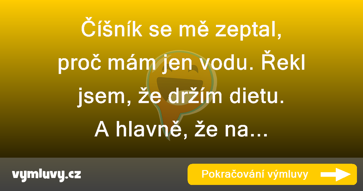 Zaslechl si jinou, lepší výmluvu? Poděl se o ní se svými přáteli i s námi. Svou výmluvu můžeš snadno přidat na tento web.