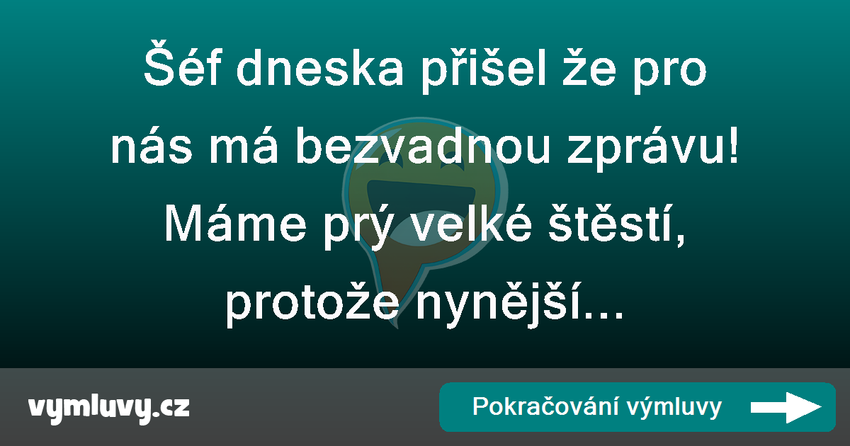 Zaslechl si jinou, lepší výmluvu? Poděl se o ní se svými přáteli i s námi. Svou výmluvu můžeš snadno přidat na tento web.