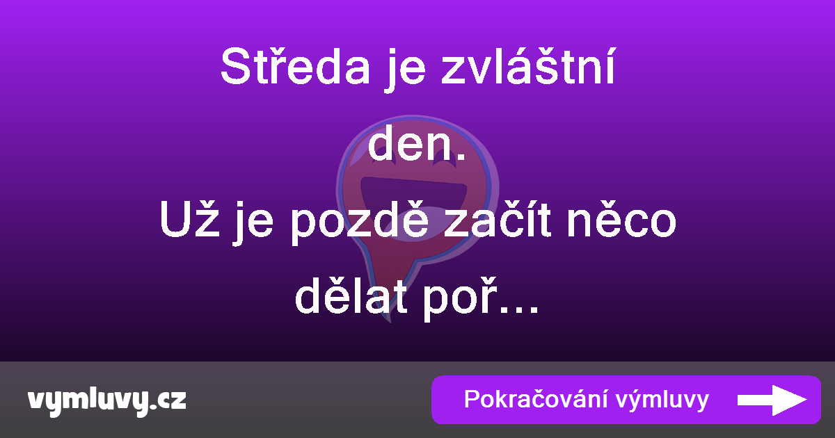 Zaslechl si jinou, lepší výmluvu? Poděl se o ní se svými přáteli i s námi. Svou výmluvu můžeš snadno přidat na tento web.
