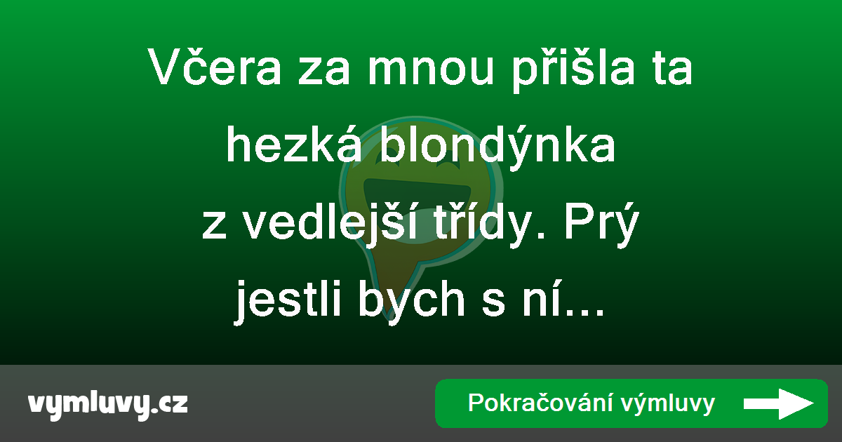 Zaslechl si jinou, lepší výmluvu? Poděl se o ní se svými přáteli i s námi. Svou výmluvu můžeš snadno přidat na tento web.