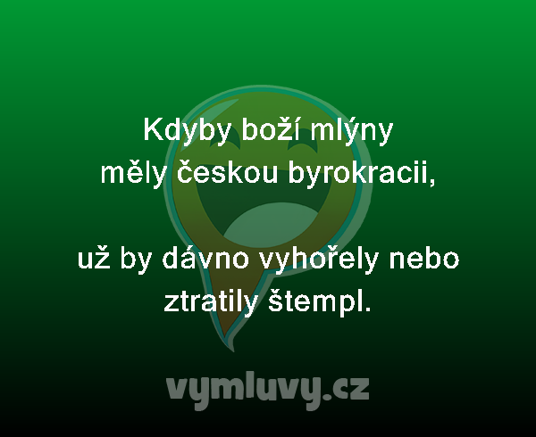 Zaslechl si jinou, lepší výmluvu? Poděl se o ní se svými přáteli i s námi. Svou výmluvu můžeš snadno přidat na tento web.