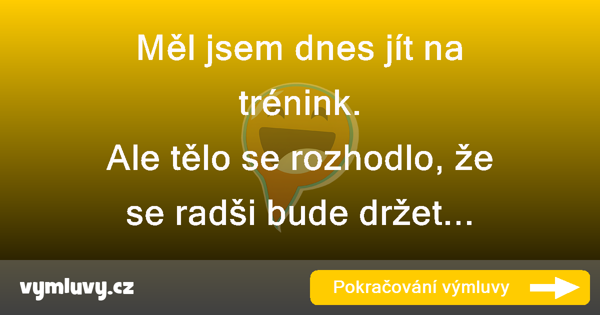Zaslechl si jinou, lepší výmluvu? Poděl se o ní se svými přáteli i s námi. Svou výmluvu můžeš snadno přidat na tento web.