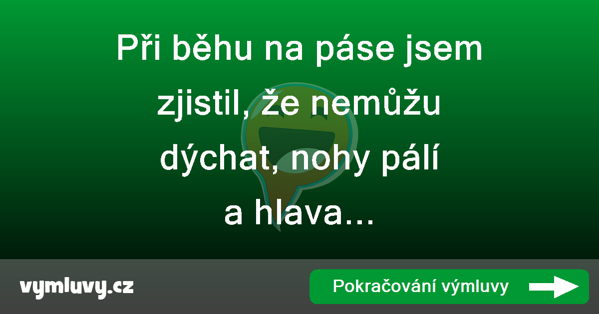 Zaslechl si jinou, lepší výmluvu? Poděl se o ní se svými přáteli i s námi. Svou výmluvu můžeš snadno přidat na tento web.